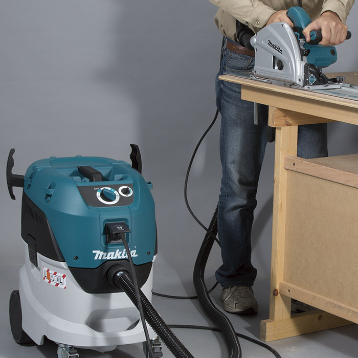 La Aspiradora de 34 L, Clase de Polvo L, para limpieza tanto en húmedo como en seco, es la más adecuada para trabajar con herramientas eléctricas. Este modelo cuenta con una toma de corriente con función Auto/Encendido/Apagado, con una carga máxima de enchufe de 2.400 W.