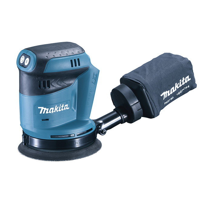 Lijadora Roto-Orbital Inalámbrica de 3 Velocidades de 125 mm (5") y 18V LXT Li-Ion de Makita con Sistema de Extracción de Polvo Integrado. Cuerpo y empuñadura de diseño ergonómico para una mayor comodidad del operador, freno de la base diseñado para reducir el giro libre y mejorar el acabado general, y sistema de control de la base para una velocidad controlada en el arranque.