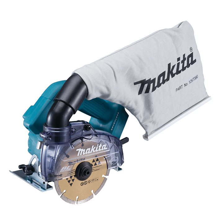 Cortadora Inalámbrica de 125 mm (5") 18V LXT BL AWS ADT, Tipo Seco. El motor BL entrega hasta 8.800 RPM, proporcionando alta potencia y excelente rendimiento de corte en piedra, mampostería, baldosas, hormigón y más. Compatible con riel guía opcional para mayor maniobrabilidad, puerto de recolección de polvo giratorio de 360° para conexión a aspiradoras / bolsa de polvo. Se puede utilizar un disco de diamante de hasta 125 mm (5") de diámetro. Corta hasta 40 mm (1-9/16") con un disco de 125 mm (5"). La carcasa ancha de la hoja permite el uso de discos de diamante curvos.
