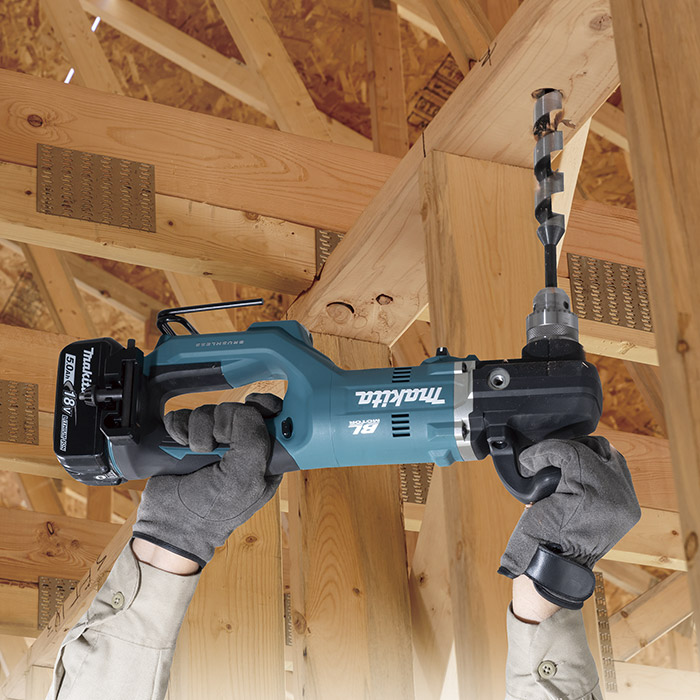 Taladro Angular Inalámbrico BL de 18V LXT de Makita con Mandril con Llave. Compacto y ligero para una mayor maniobrabilidad en diversas posturas de trabajo y menor fatiga del usuario. El ensamblaje de gancho (accesorio anti-caída) también se puede usar como gancho para colgar. Se puede acoplar una correa anti-caída. Perforación de alta velocidad que supera a las herramientas de CA. Potente perforación incluso en agujeros de gran diámetro. El motor BL elimina las escobillas de carbón, lo que le permite funcionar más frío y de manera más eficiente para una vida útil más larga. El motor BL utiliza la energía de manera eficiente para adaptar el torque y las RPM a las demandas cambiantes de la aplicación. Excepcional alta potencia y alta velocidad. Las luces LED dobles con función de pre y post-iluminación iluminan el área de trabajo. Arranque suave para puestas en marcha fluidas. Resistencia al agua compatible con XPT. Freno eléctrico para mayor productividad.