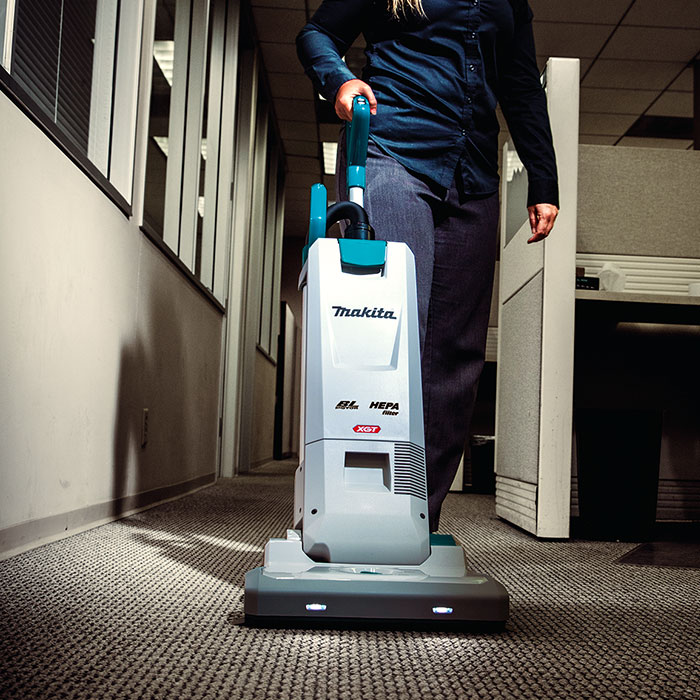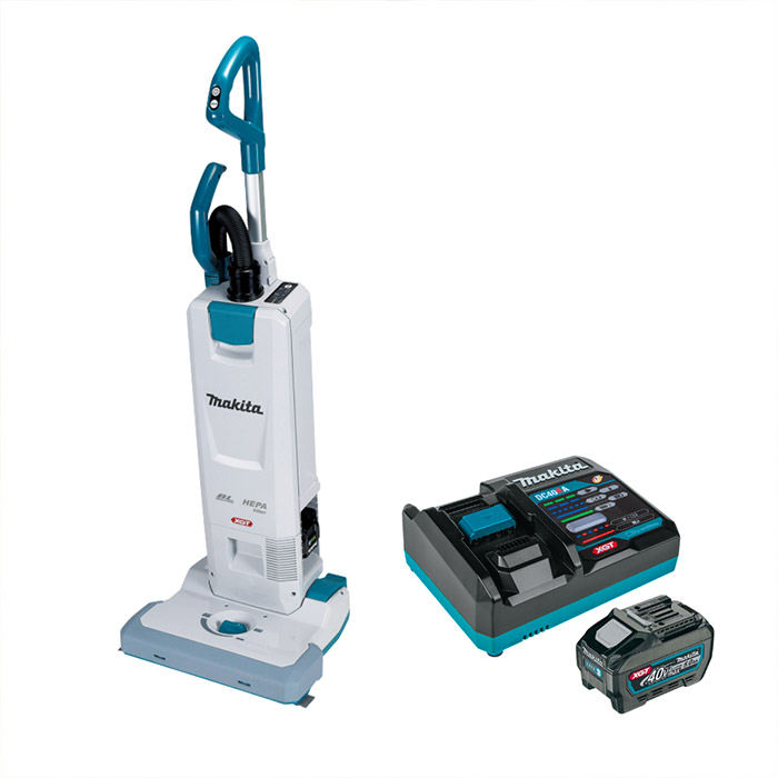 La Aspiradora Vertical HEPA sin Escobillas (Brushless) BL XGT de 40Vmax, 5 L, tiene una Alta tasa de recolección de polvo que corresponde al nivel oro del sello de aprobación del CRI. El ancho de limpieza aumentado de 381mm proporciona una eficiencia de limpieza mejorada en comparación con los 318mm del DVC560. Ofrece hasta 100 min de tiempo de ejecución usando la batería BL4050F en el modo de Bajo ruido.