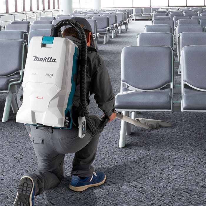 La Aspiradora de Mochila HEPA Inalámbrica sin Escobillas (Brushless) BL XGT de 40Vmax tiene una capacidad de tanque de 6L, mecanismo de limpieza automática del filtro y se realizaron mejoras para una experiencia de mochilero más cómoda. Ofrece hasta 260 min de tiempo de ejecución usando dos baterías BL4050F con el Modo 1.