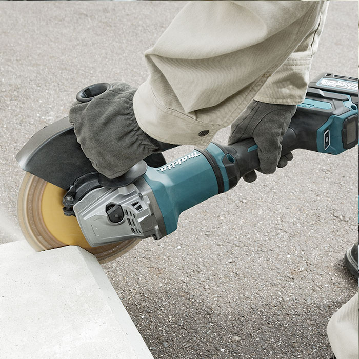 Esmeriladora Angular Inalámbrica BL AWS AFT XGT de 40Vmax, 230 mm (9") Makita. Liviana para una mayor operabilidad y Mayor potencia bajo carga pesada. Mango ergonómico de fácil agarre con empuñadura suave que proporciona un agarre seguro y cómodo.