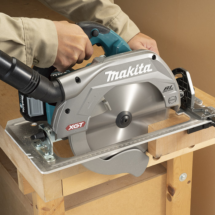 Sierra Circular Inalámbrica BL AWS XGT de 40Vmax, 235 mm (9-1/4"), con Freno Eléctrico, Arranque Suave y Luz LED Doble Makita. Liviana y de alta potencia. El motor BL de gran tamaño rediseñado y la batería XGT de Li-Ion de 40Vmax entregan la misma o mayor potencia que la de nuestros modelos con cable y los modelos con cable de la competencia. El Sistema Inalámbrico de Arranque Automático (AWS) se conecta a aspiradoras compatibles con Bluetooth. Freno eléctrico para máxima productividad. El motor BL elimina las escobillas de carbón, permitiendo que el motor BL funcione más frío y de manera más eficiente para una vida útil más larga. La boquilla de polvo giratoria disminuye la pérdida de comodidad de la movilidad inalámbrica causada por la manguera cuando la sierra se conecta a las aspiradoras. Luces LED dobles con funciones de pre-iluminación y post-iluminación para una mejor iluminación y un trabajo más preciso. El arranque suave suprime la reacción de arranque para mayor control y mejor precisión. La función anti-reinicio minimiza el arranque accidental. Alta resistencia al agua compatible con XPT. El circuito de protección de la batería protege contra sobrecarga, sobredescarga y sobrecalentamiento.