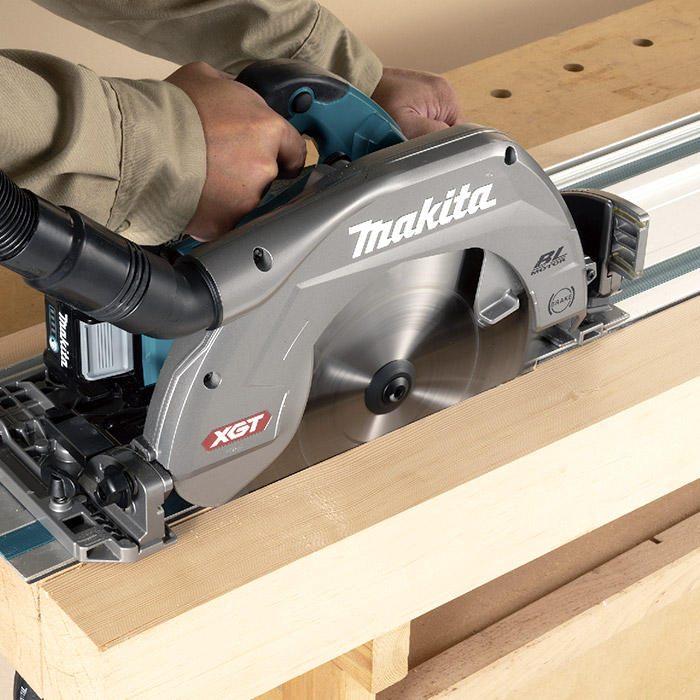Sierra Circular Inalámbrica BL AWS XGT de 40Vmax, 260 mm (10-1/4") / 270 mm (10-5/8"), con Freno Eléctrico, Arranque Suave y Luz LED Doble Makita. El motor BL de gran tamaño entrega alta potencia similar o superior a los modelos con cable. Compatible con riel guía sin adaptador, proporcionando un corte de precisión. El motor BL elimina las escobillas de carbón, permitiendo que el motor BL funcione más frío y de manera más eficiente para una vida útil más larga. Freno eléctrico para máxima productividad. El Sistema Inalámbrico de Arranque Automático (AWS) se conecta a aspiradoras compatibles con Bluetooth. Función anti-reinicio diseñada para minimizar el arranque del motor cuando se inserta la batería con el interruptor bloqueado. Luces LED dobles con funciones de pre-iluminación y post-iluminación para una mejor iluminación y un trabajo más preciso. Alta resistencia al agua compatible con XPT.