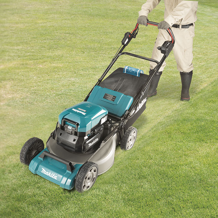 Cortadora de Césped Autopropulsada a Batería de 53 cm (21"). Alimentada por un sistema de accionamiento de alta potencia de 36V usando la mochila de energía portátil de Makita PDC01 o PDC1200 para un corte continuo y prolongado. 3 modos (normal / arranque suave sin carga / reducción de ruido). La rigidez mejorada del mango soporta el mismo uso rudo que las cortadoras de césped a motor. Mayor rendimiento de corte y Plataforma de corte de acero ancha y robusta para una mayor durabilidad. 3 en 1 (Corte de césped / Recolección de hierba / Triturado (Mulching)).