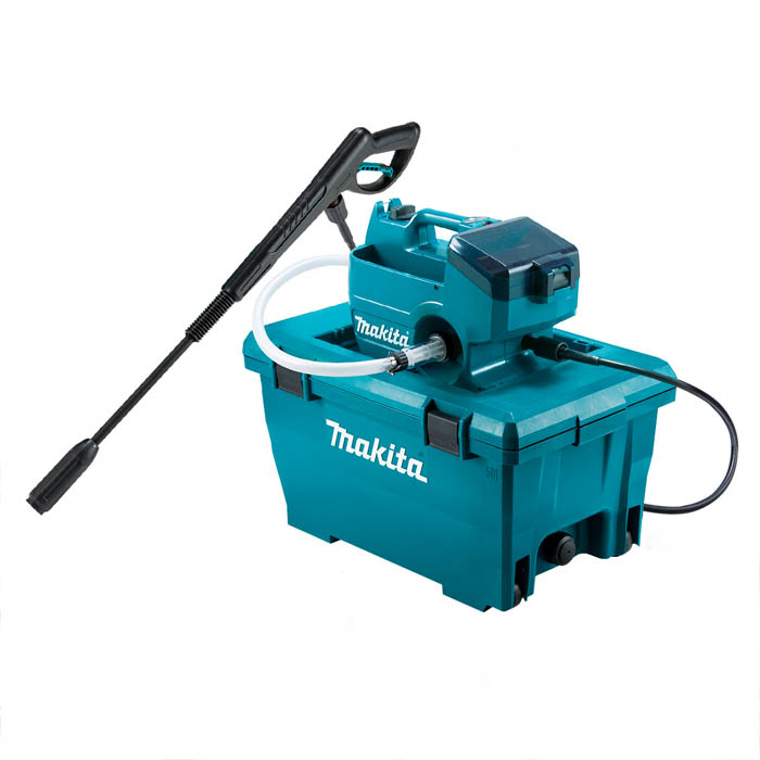 La Hidrolavadora Inalámbrica de Alta Presión de 18V X2 (36V) LXT BL de Makita tiene una presión máxima admisible de 8 MPa, tan alta como la de un modelo de CA, lograda mediante el empleo de un motor de CC sin escobillas de alta potencia y una bomba construida por Makita. Este modelo está equipado con ajuste de presión continuo al alcance de la mano, una caja de almacenamiento que también puede usarse como tanque de agua con una capacidad de aprox. 50 L y selección de 2 presiones (alta/baja). Construcción fácil de transportar y un rendimiento de lavado lo suficientemente alto como para limpiar automóviles o maquinaria agrícola.